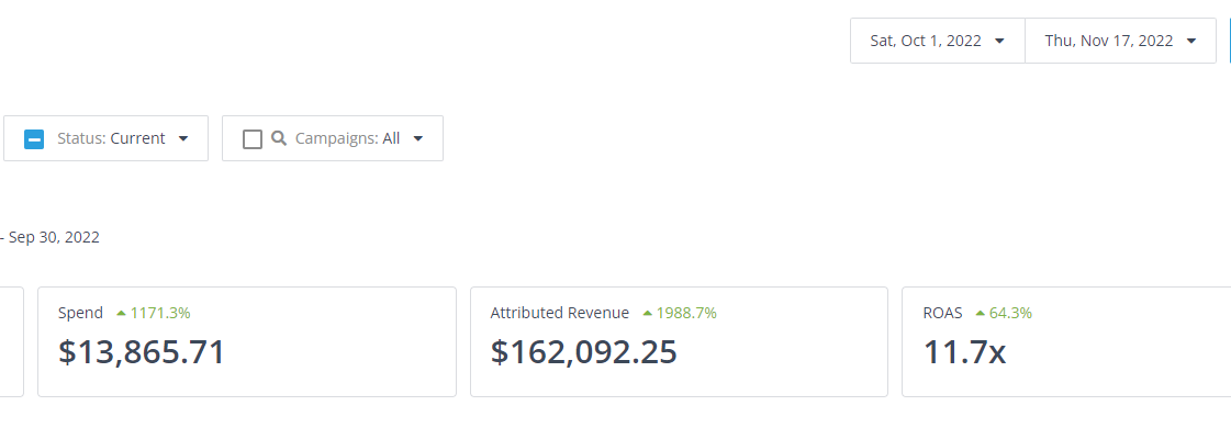 Marketing Automation: Activating a full suite of automated marketing tools to improve performance across multiple data points, including revenue, number of sales, conversion rate, customer lifetime value, average order value, and ROAS.